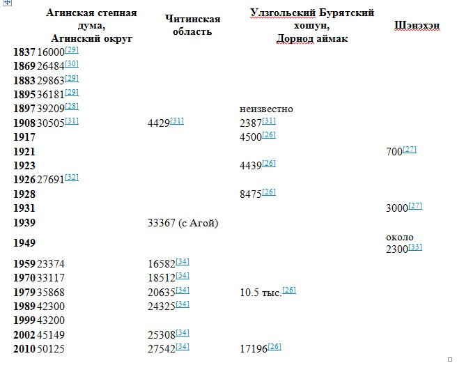 По переписи населения 1897 года численность этнотерриториальной группы агинских бурят составляла примерно 40 тысяч человек[28].